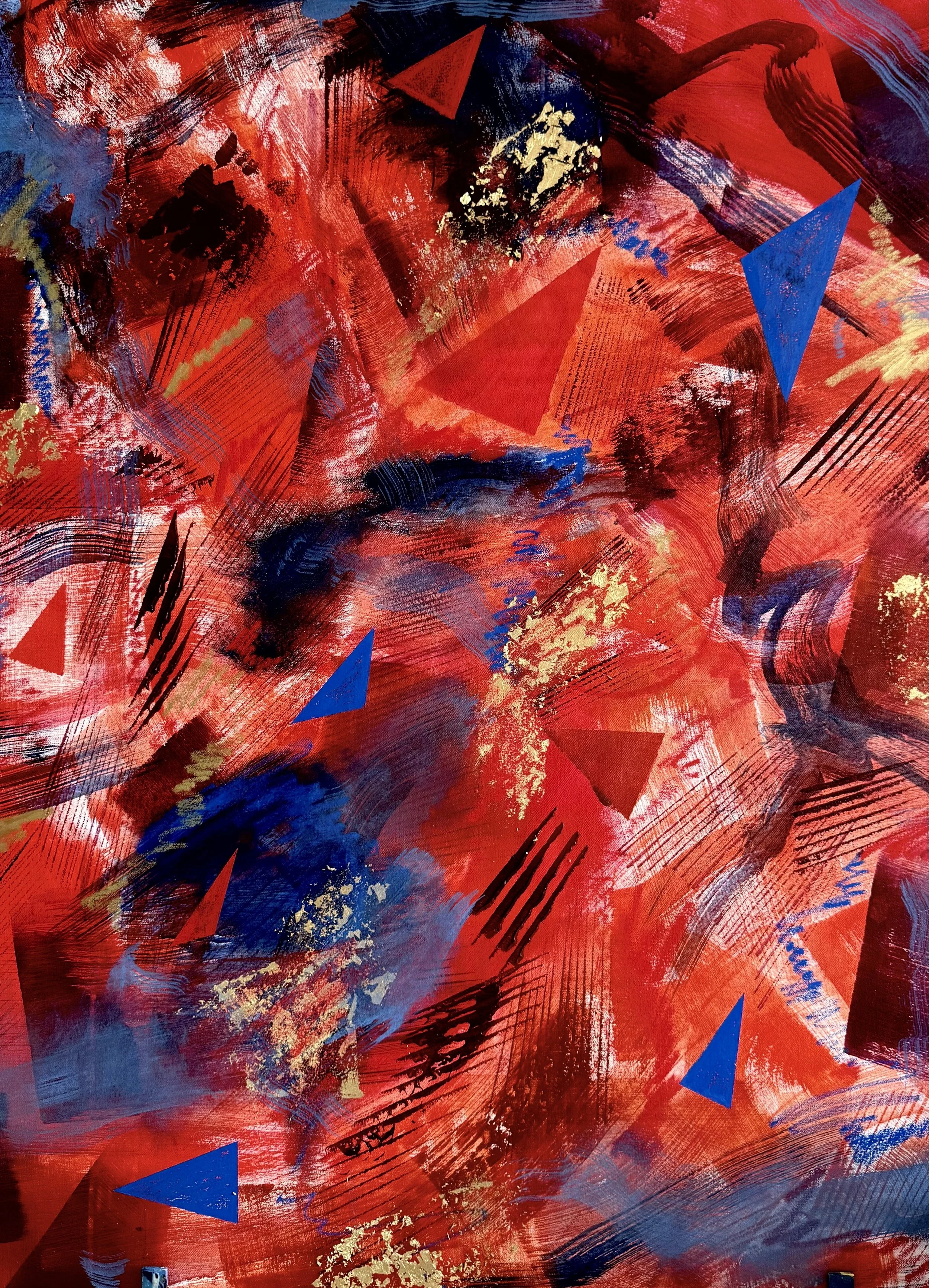 Kurukshetra | 36 × 48 in | Acrylic, Oil, Pastel & Gold Leaf on Canvas | 2024